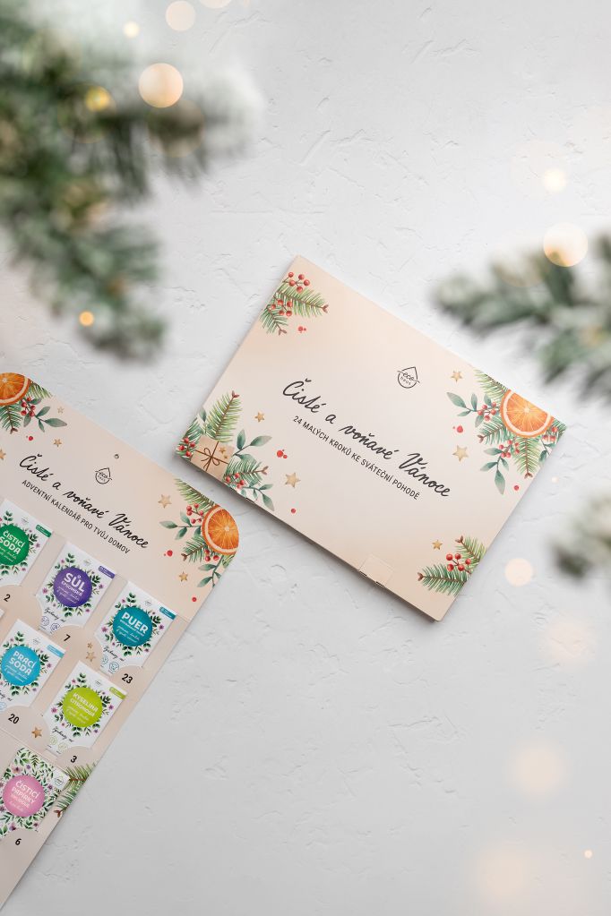 EcoHaus uvádí první adventní kalendář pro úklid v Česku. 23 dní plných inspirace, úkolů a vzorků přírodní drogerie – pro čistý domov bez stresu a bez chemie.
