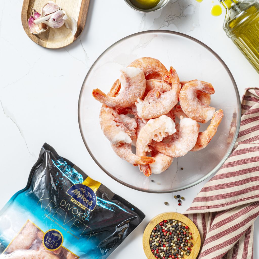 Krevety se u spotřebitelů stávají stále populárnější. Malé koktejlové krevety jsou držiteli certifikace ASC a pocházejí z prověřených farem ve Vietnamu. Dokonale zpestří jak těstoviny, tak třeba rizota.
