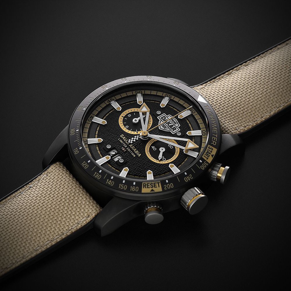 Výrazným prvkem je reliéfní číselník s nápisem Saudi Arabia a označením konkrétního kusu v limitované edici.