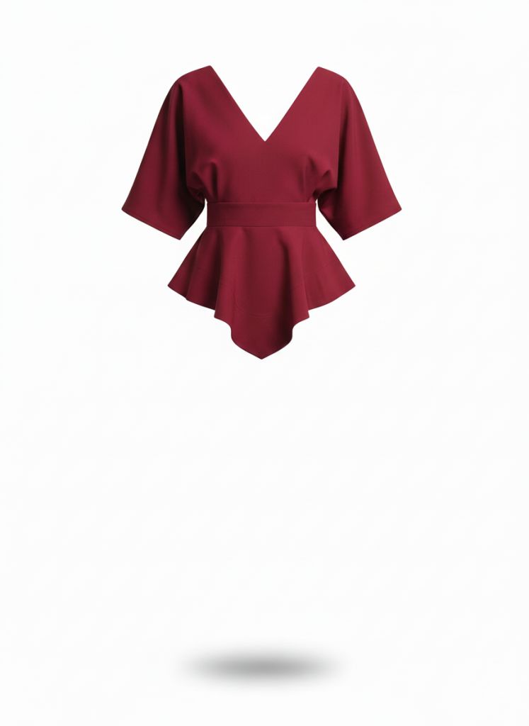 Ženský střih zvýrazní pas a vytvaruje jemnou, elegantní siluetu. Véčkový výstřih dodává smyslnost, zatímco rozšířený spodní lem přináší lehkost a přirozený pohyb. Ideální volba pro romantickou večeři i slavnostní příležitosti — stačí doplnit decentními šperky a nechat rudou zazářit.