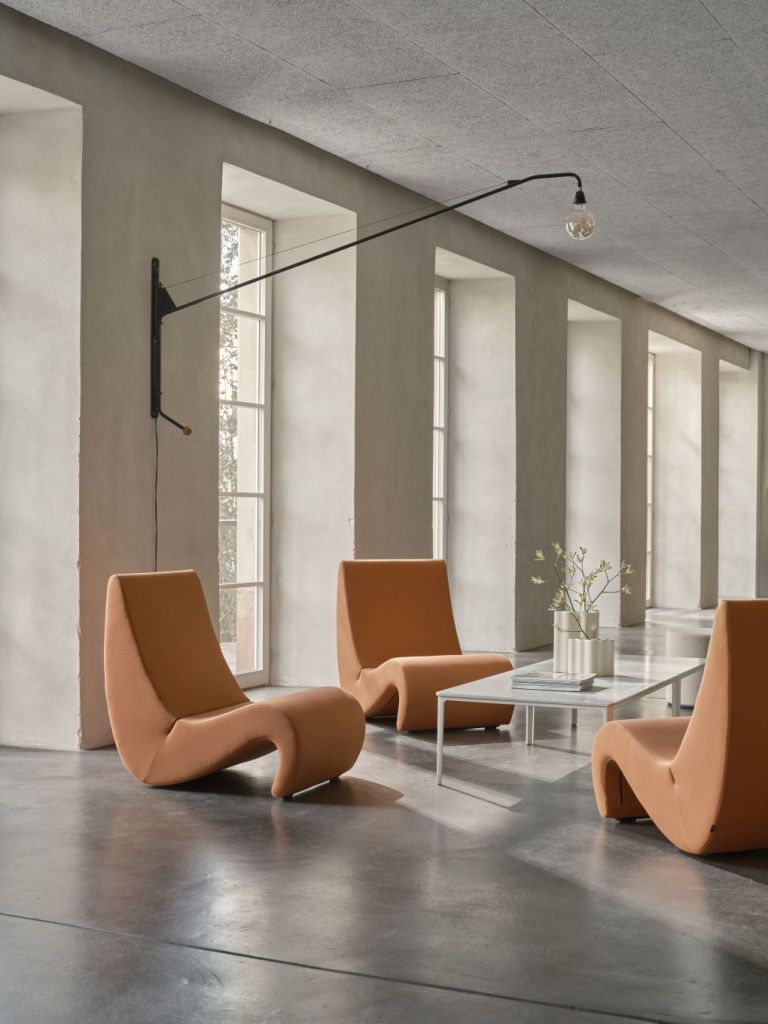 Ikonické křeslo se srdcovým opěradlem z roku 1958 nabízí pohodlné čalouněné sezení a velkou volnost pohybu. Kromě látky Tonus je nyní dostupné i v materiálech Cosy 2, Volo, Cento, Hola a v kůži Premium Leather.
